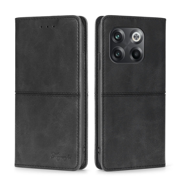 Funda de Teléfono OnePlus 10T Cuero Magnético Textura de Vaca (Negro)
