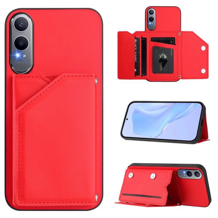 Funda para OnePlus Nord Ce4 con 4 Ranuras para Tarjetas y Correa para Muñeca (Rojo)