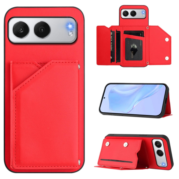 Funda para Teléfono OnePlus Nord 4 con 4 Ranuras para Tarjetas y Correa para Muñeca (Rojo)