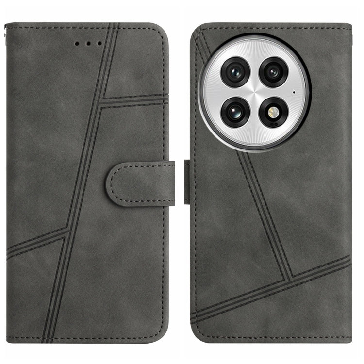 Funda de Cuero para OnePlus 13 con Costuras y Tacto Agradable (Gris)