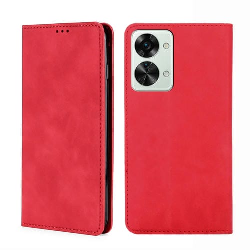 Funda de Cuero para OnePlus Nord 2T Skin Feel Flip Horizontal Magnética (Rojo)