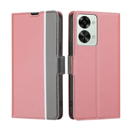 Funda de Cuero para OnePlus Nord 2T con Textura Twill y Botón Lateral (Rosa)