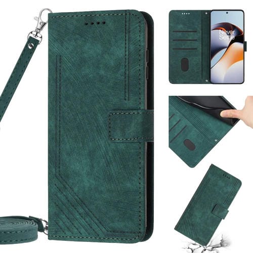 Funda de Cuero para OnePlus Nord Ce 2 Lite 5G y Realme 9 Pro 5G con Cordón Skin Feel Stripe (Verde)