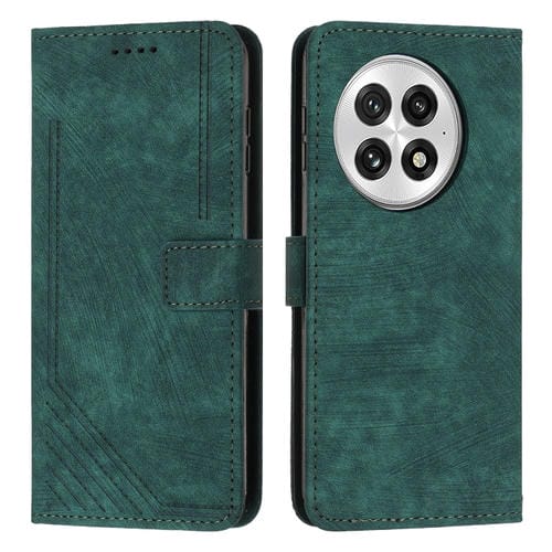 Funda de Cuero para OnePlus 13 con Patrón de Rayas y Cordón (Verde)