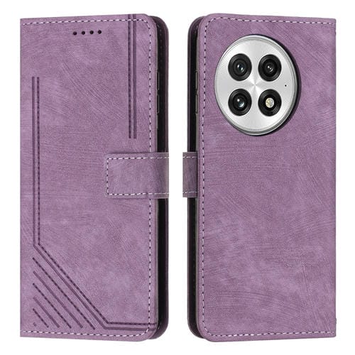 Funda de Cuero OnePlus 13 con Diseño de Rayas y Tacto Sedoso (Morado)