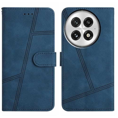 Funda de Cuero para OnePlus 13 con Patrón de Rayas y Cordón (Azul)