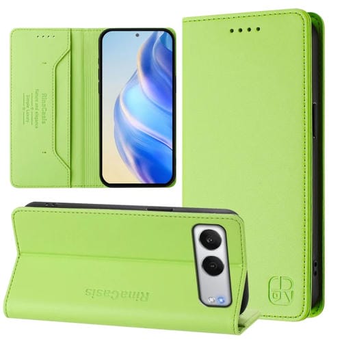 Funda de Cuero con Doble Pliegue y Succión Magnética Rfid para OnePlus Nord 4 Rc01 (Verde Hierba)