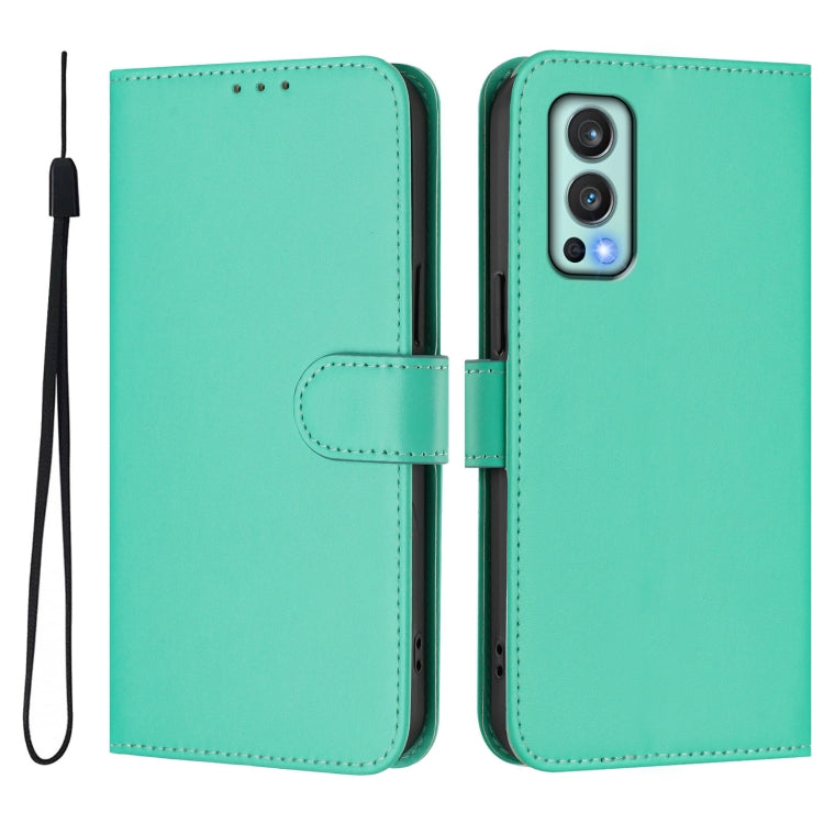 Funda de Cuero Textura Piel para OnePlus Nord 2 5G con Cordón (Verde)