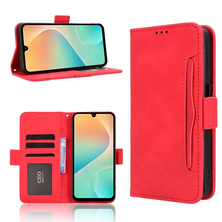 Funda de piel con textura de becerro y ranuras para tarjetas para Samsung Galaxy M36 5G (roja)