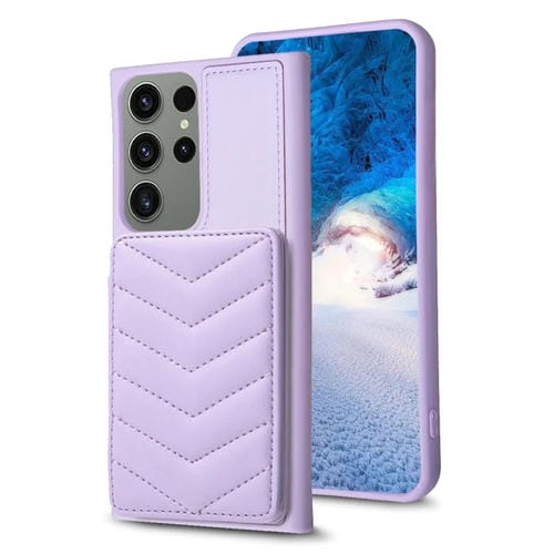 Para Samsung Galaxy S22 Ultra 5G BF26 Wave Pattern Card Bag Holder Phone Case (Púrpura)