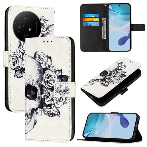 Funda de Cuero con Tapa Horizontal y Pintura 3D para TCL 405/406/408 (Calavera)