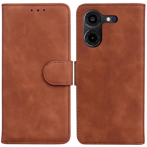 Funda de Cuero con Tapa para Tecno Pova 5 Pro Skin Feel Pure Color (Marrón)