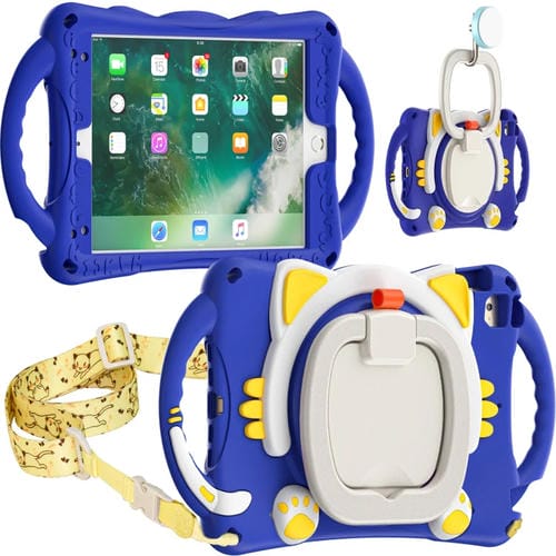 Funda silicona para iPad Mini Cute Cat King Kids con soporte correa y manija (Azul Oscuro)