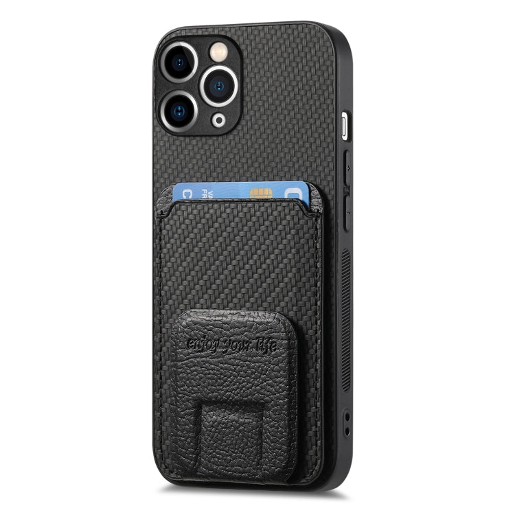 Funda para Teléfono iPhone 11 Pro Max Soporte Plegable Bolsa para Tarjetas Fibra de Carbono (Negro)