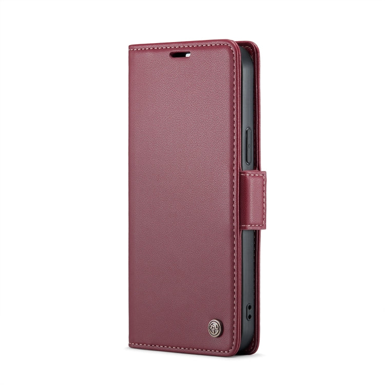 Funda para iPhone 12 Mini Caseme 023 Mariposa Hebilla Litchi Textura Rfid Cuero Antirrobo (Rojo Vino)