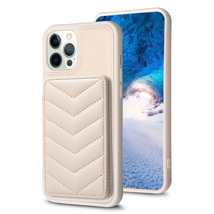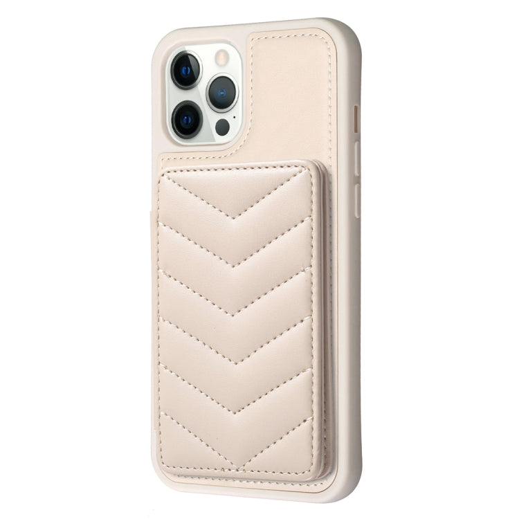 Funda para iPhone 12 Pro Max Bf26 Wave Pattern Card Bag Holder (Beige)