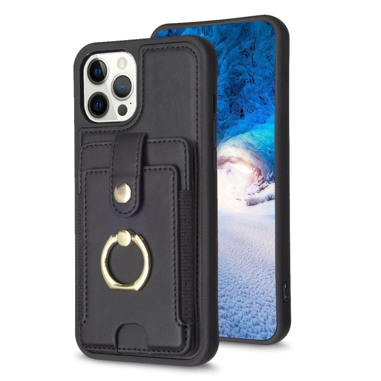 Anillo de Metal Tarjeta Bolsa Titular Caja para iPhone 12 Pro Max Bf27 (Negro)