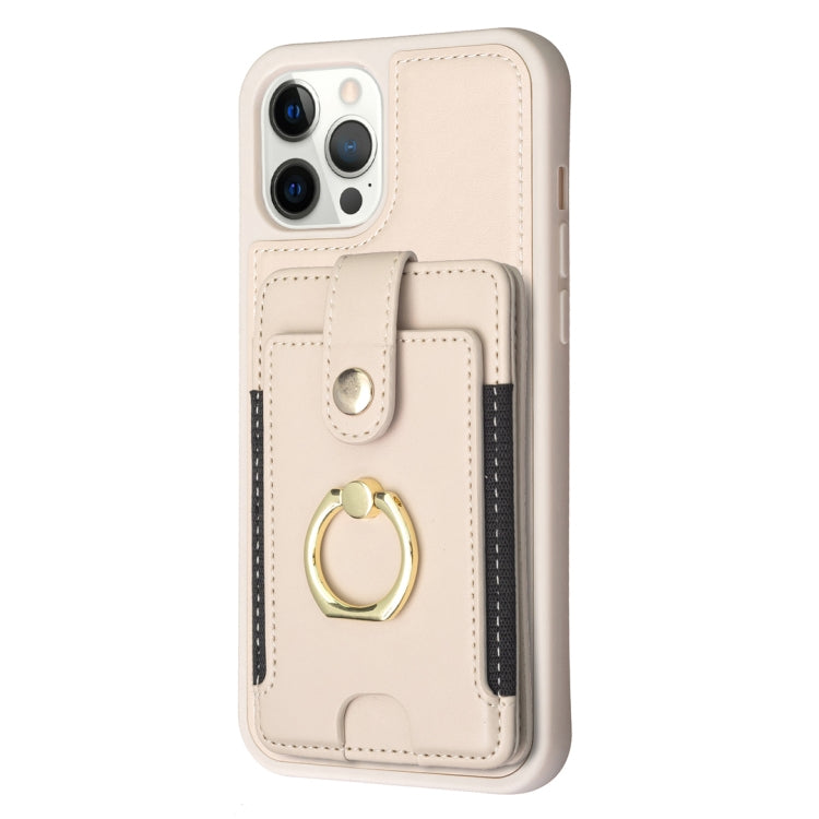 Funda para iPhone 12 Pro Max Bf27 Anillo de Metal Tarjeta Bolsa Titular Caja del Teléfono (Beige)