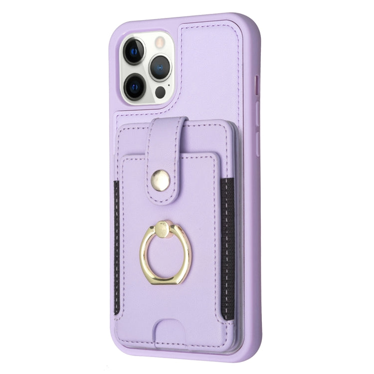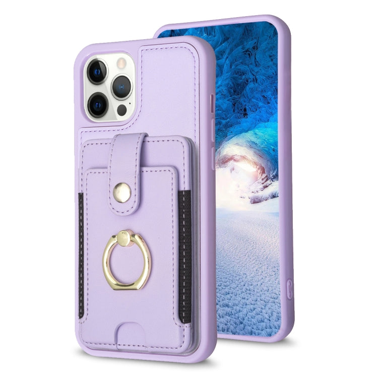 Funda de teléfono Bf27 para iPhone 12 Pro Max con soporte para tarjeta y anillo de metal (Púrpura)