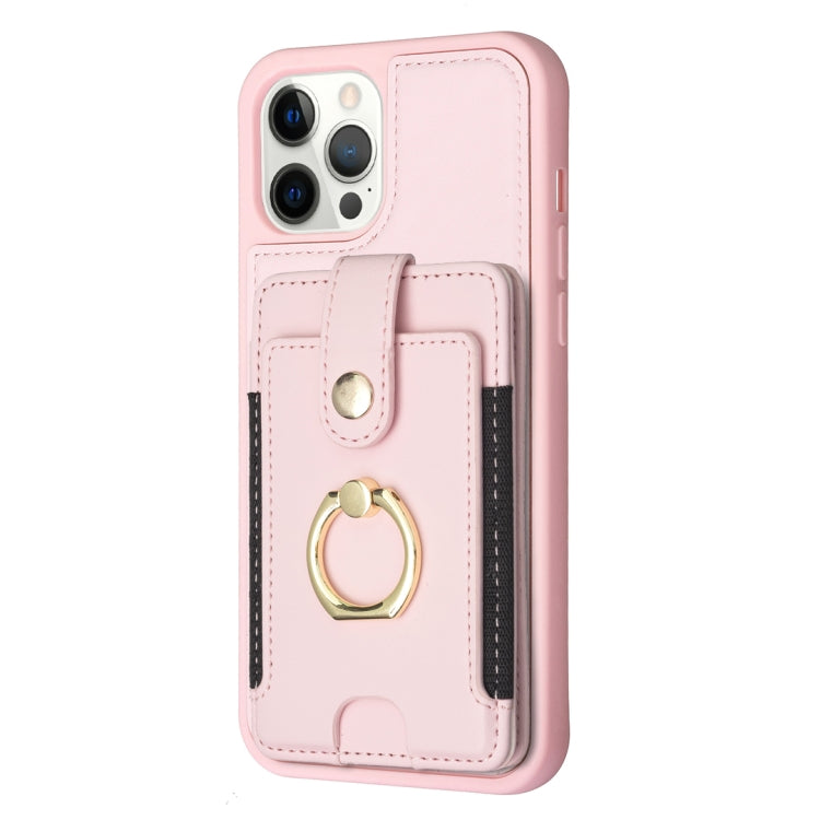 Funda para Teléfono Bf27 iPhone 12 Pro Max Soporte Tarjeta Anillo de Metal (Rosa)