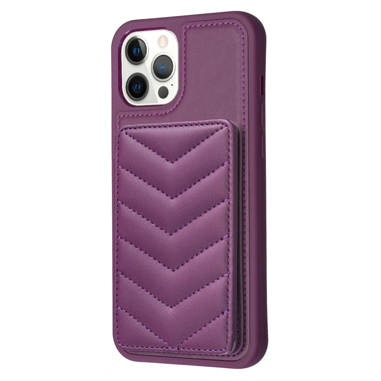 Funda para Teléfono iPhone 12 Pro Max Bf26 Wave Pattern Card Bag Holder (Púrpura Oscuro)