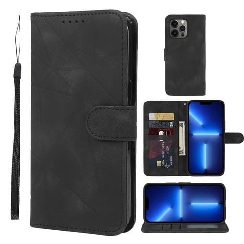 Funda para iPhone 13 Pro Max Skin Feel de Cuero con Líneas Geométricas (Negro)