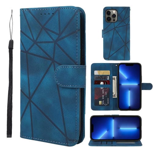 Funda para iPhone 13 Pro Max Skin Feel de Cuero con Líneas Geométricas (Azul)