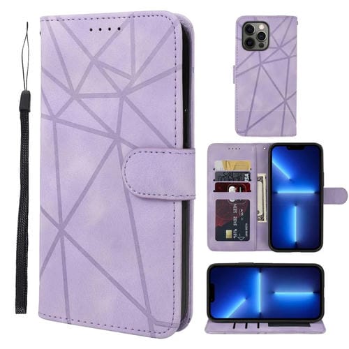Funda de Piel iPhone 13 Pro Max Líneas Geométricas Tacto Sedoso (Morado)