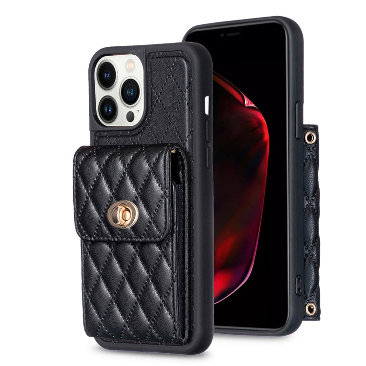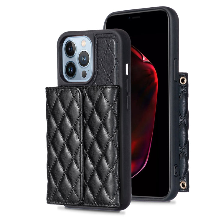 Funda para iPhone 13 Pro Vertical Wallet Rhombic Leather Phone Case (Negro)