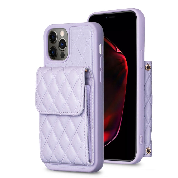 Funda para iPhone 13 Pro Vertical Wallet Rhombic Leather Phone Case (Púrpura)