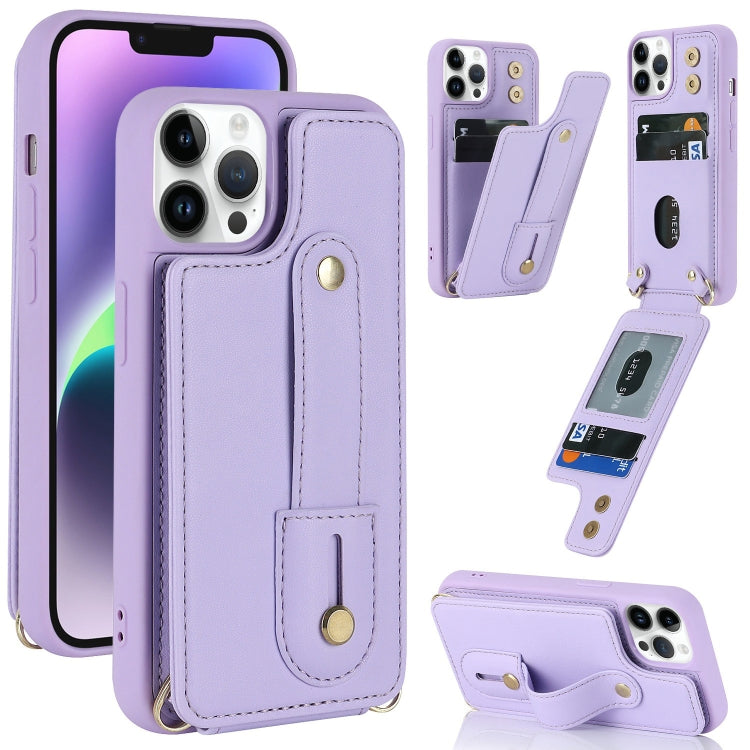 Funda para iPhone 13 Pro Wristband Vertical Flip Wallet Back Cover (Púrpura)