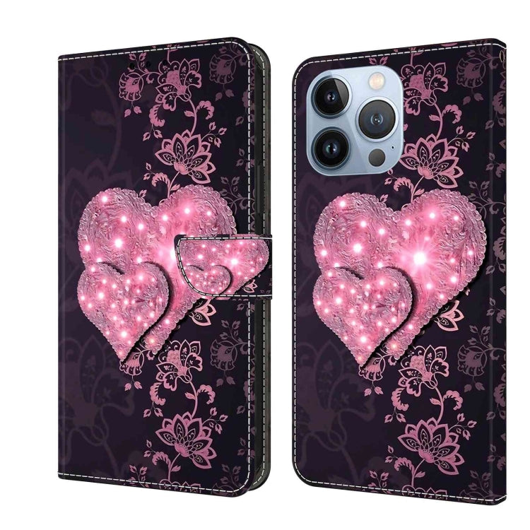 Funda Protectora para iPhone 13 Pro Lace Love Crystal 3D Cuero a Prueba de Golpes