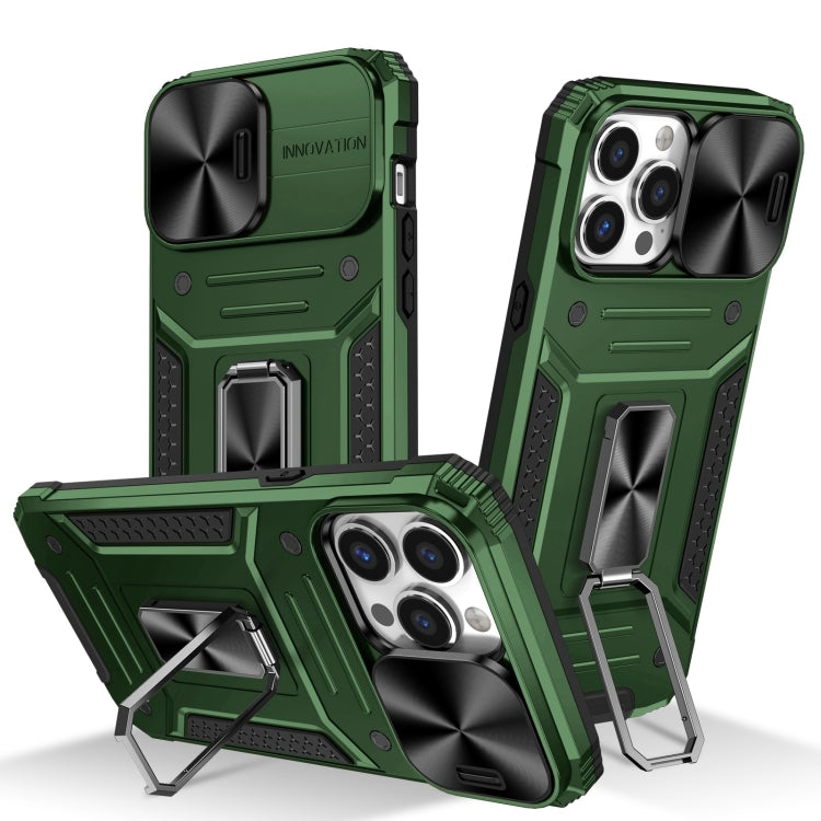 Estuche para Teléfono iPhone 13 Pro Sliding Camshield TPU + PC Prueba de Golpes con Soporte (Verde)