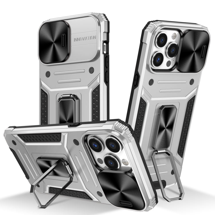 Estuche para Teléfono iPhone 13 Pro Sliding Camshield TPU + PC a Prueba de Golpes con Soporte (Gris)