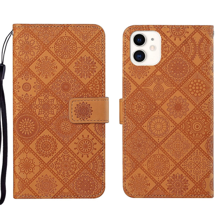 Estuche para Teléfono iPhone 13 Pro Cuero Patrón En Relieve Estilo Étnico (Marrón)