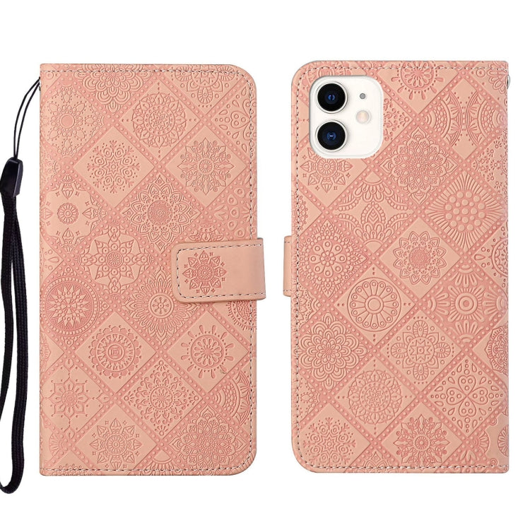 Estuche para Teléfono iPhone 13 Pro Cuero Patrón en Relieve Estilo Étnico (Rosa)