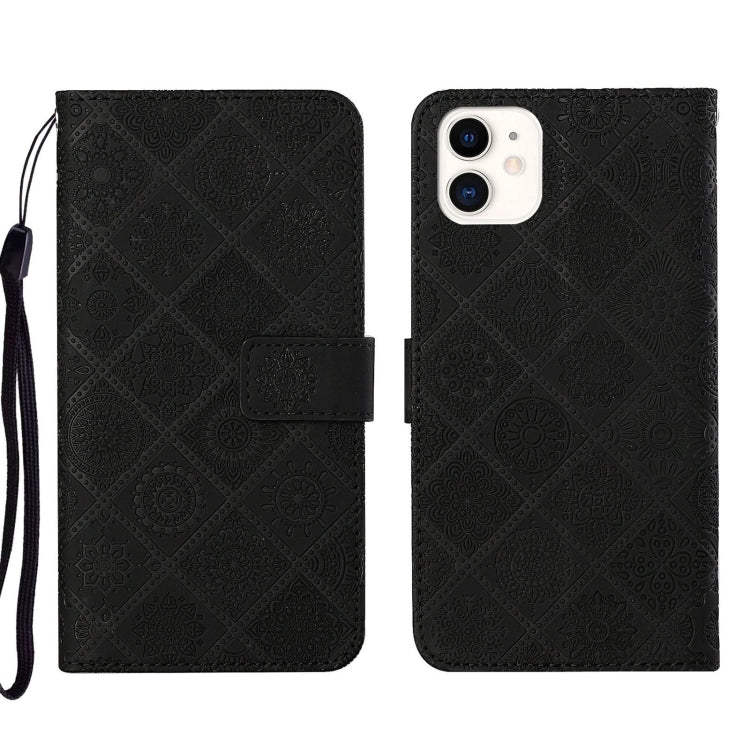 Estuche para Teléfono iPhone 13 Pro Cuero Patrón en Relieve Estilo Étnico (Negro)
