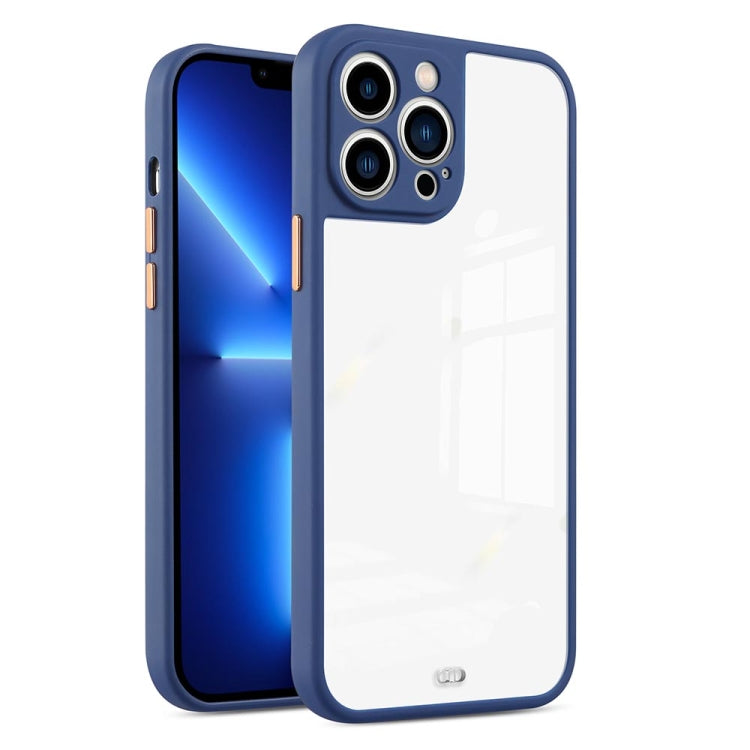 Funda de teléfono TPU para iPhone 13 Pro botón galvanizado dos colores (Azul)