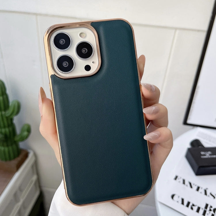Funda para iPhone 13 Pro Luolai Series Cuero Genuino Nano Galvanoplastia (Verde Oscuro)