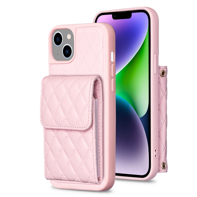 Funda Vertical Wallet para iPhone 14 Rhombic Leather Phone Case (Rosa)