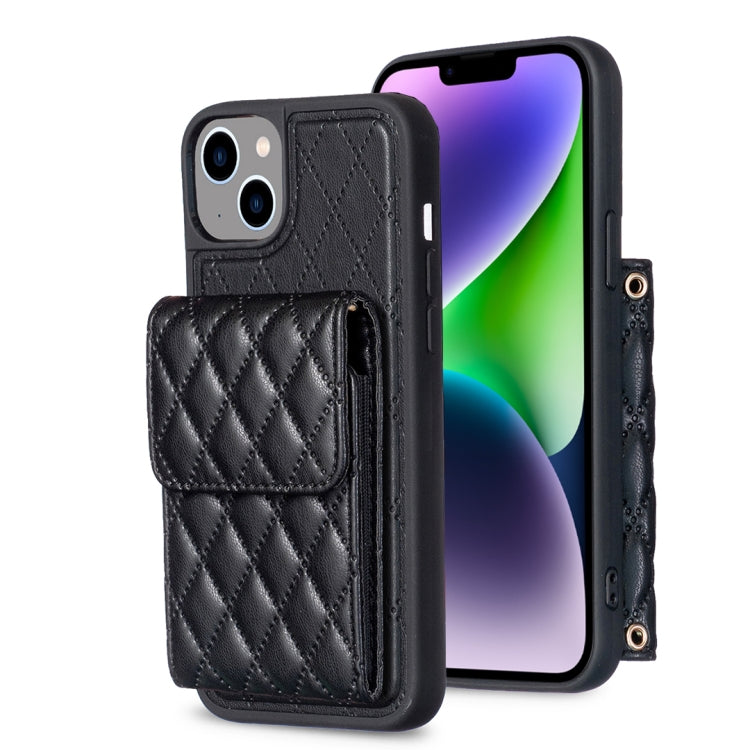 Funda para iPhone 14 Vertical Wallet Rhombic Leather Phone Case (Negro)