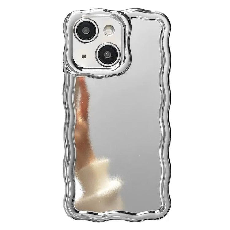 Caja de teléfono de silicona para iPhone 14 con ondas de espejo galvanizadas (Plata)