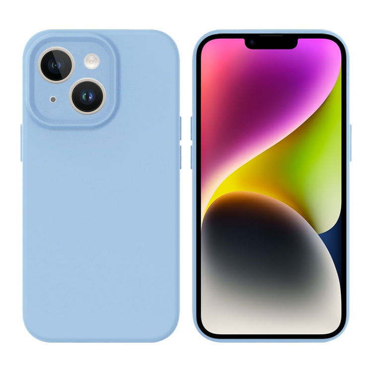 Funda de Teléfono iPhone 14 Silicona Líquida Orificio Precisión Magsafe (Azul Claro)