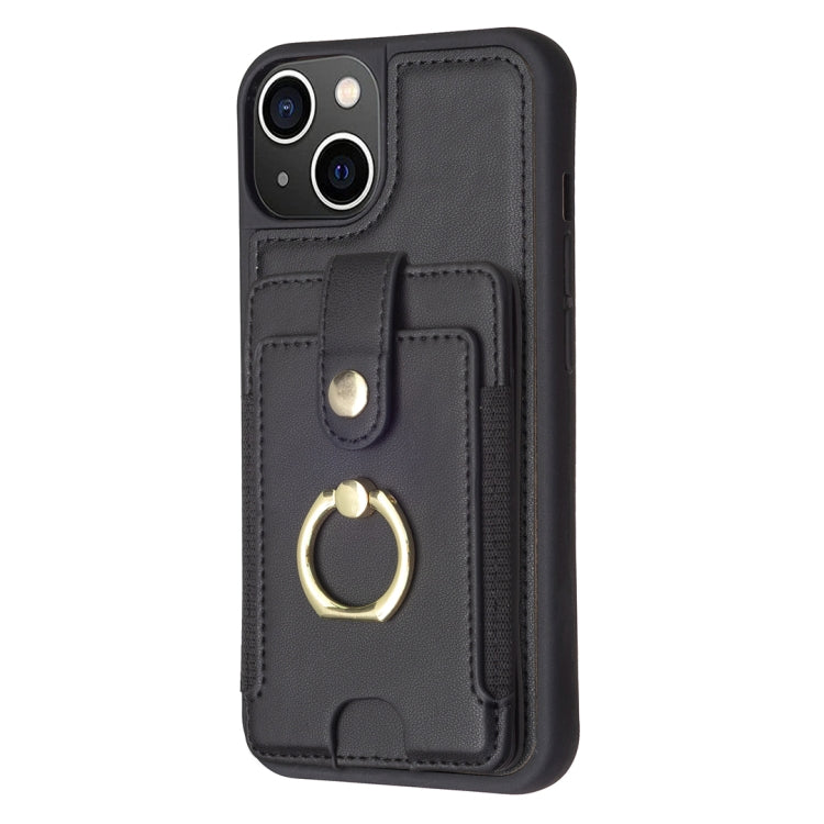 Funda para Teléfono Bf27 para iPhone 14 y 13 con Soporte para Tarjeta y Anillo de Metal (Negro)
