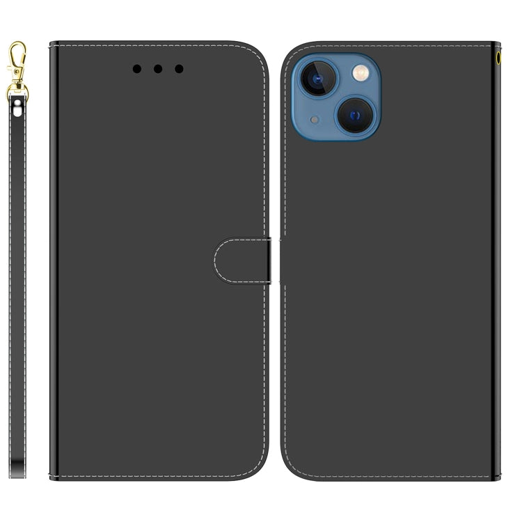 Estuche para teléfono iPhone 14 Cuero con superficie de espejo imitado (Negro)