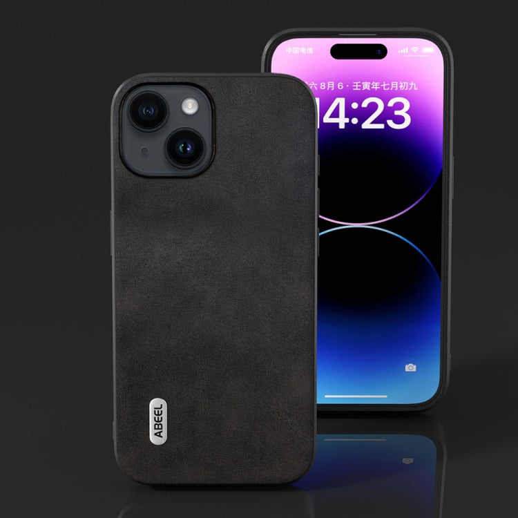 Funda de teléfono Abeel para iPhone 14 con textura de piel de vaca doble color (Negro)