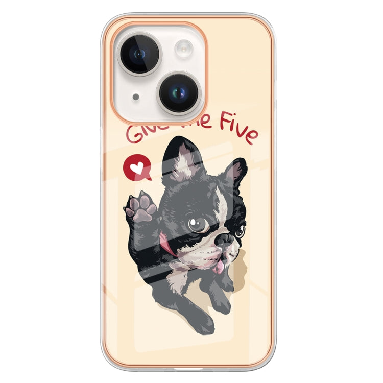 Caja de teléfono para iPhone 14 Imd doble cara mármol galvanizado (Perro de la Suerte)