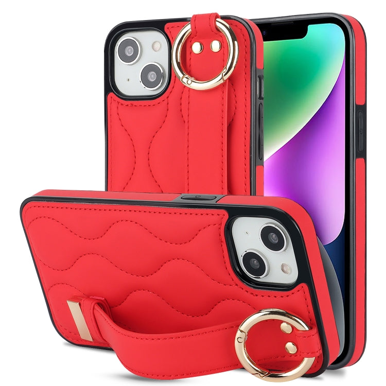 Funda para iPhone 14 Antideslizante Cobertura Completa Anillo PU con Muñequera (Rojo)