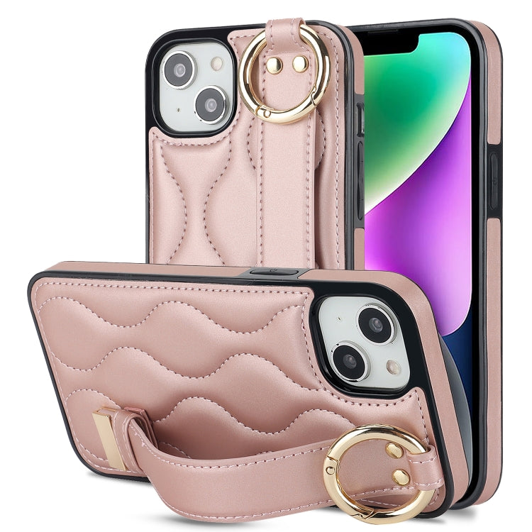 Funda para iPhone 14 Antideslizante con Anillo Cobertura Completa Pu con Muñequera (Oro Rosa)