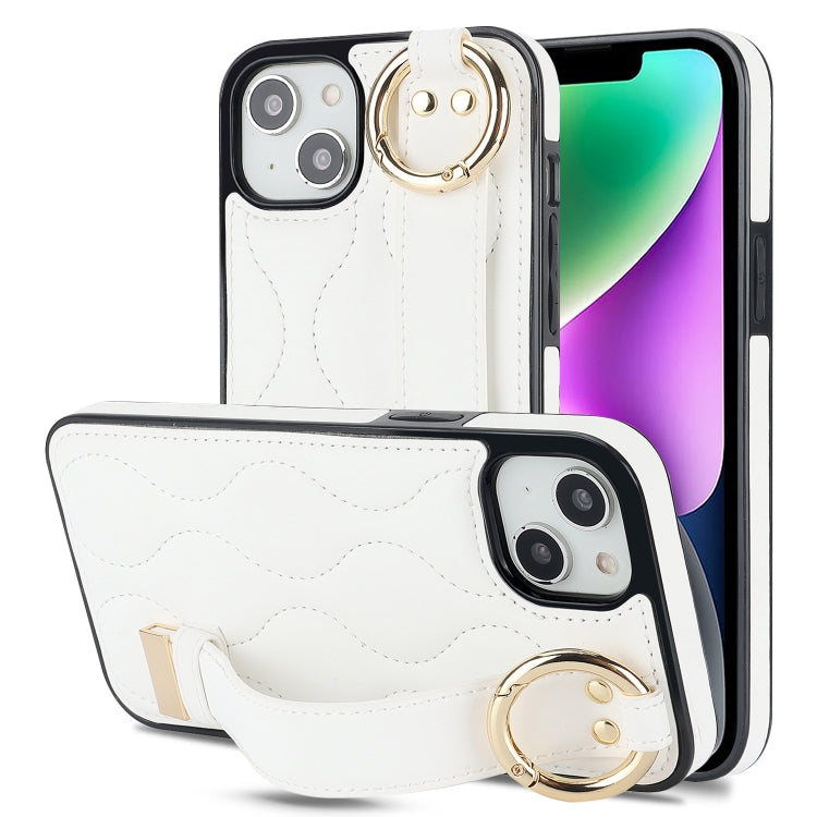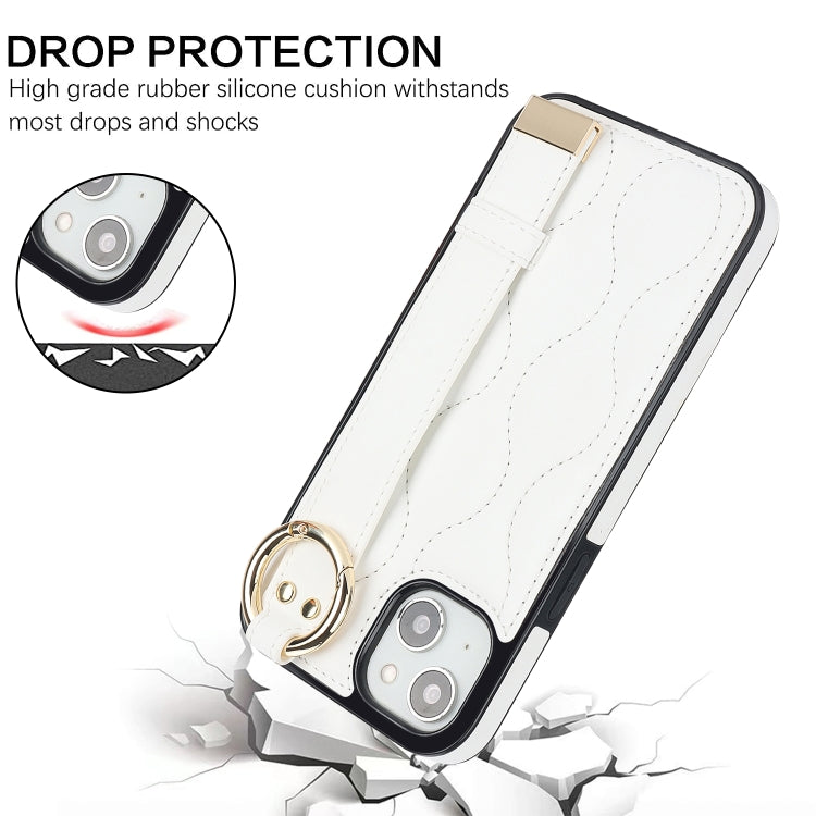 Funda para iPhone 14 Antideslizante con Anillo Cobertura Completa PU con Muñequera (Blanco)